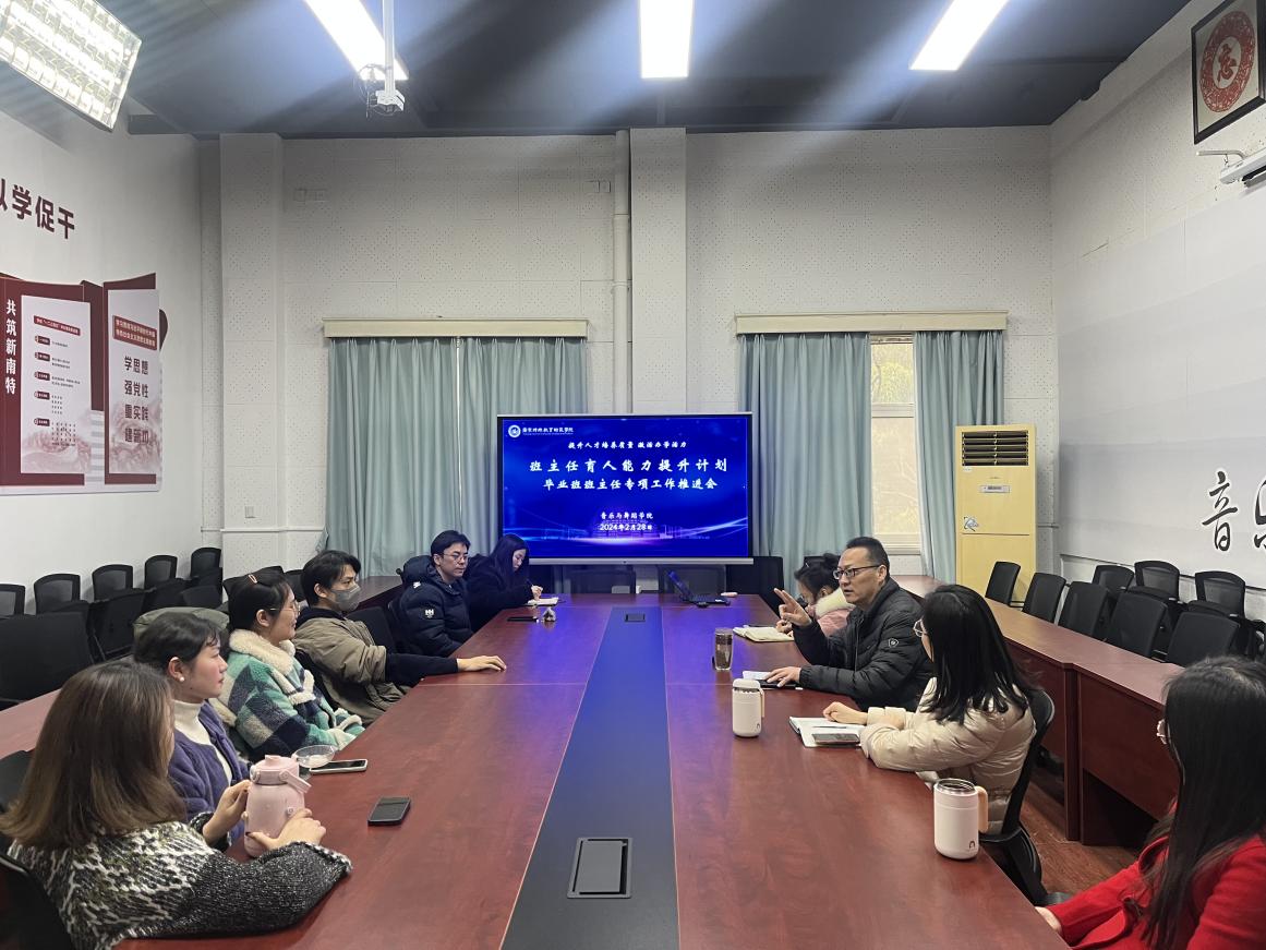 考研成绩公布后,音乐与舞蹈学院第一时间召开毕业班班主任工作专题会议,学院班子成员参加,统筹部署考研指导工作。辅导员精准摸排考研学生的成绩数据,对标国家线、往年录取情况,掌握基本情况;班主任点对点摸排,加强分类指导,专业课老师为学生开展复试指导;学院广泛查询各大院校的调剂信息,以便学生及时了解并作出选择。