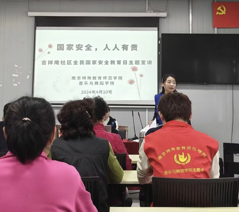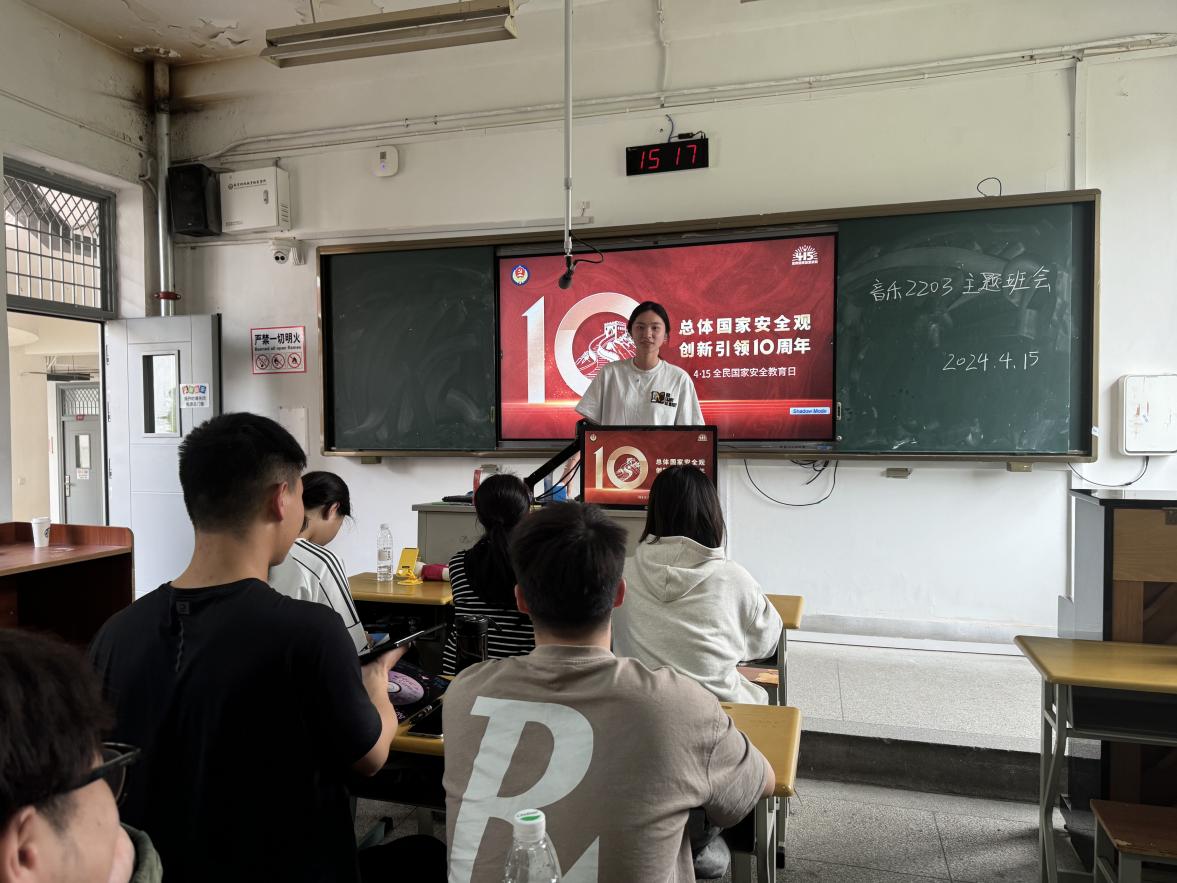 学院通过开展主题班会、知识竞赛、作品征集等形式,学习总体国家安全观相关知识,组织师生观看国家安全教育线上公开课,引导师生增强国家安全意识,自觉维护国家安全。同时学院还充分发挥专业优势,组织国家安全教育宣讲进社区活动,学生志愿者们通过艺术表演等形式,宣传总体国家安全观,帮助社区居民在艺术中认识国家安全的重要性,筑牢国家安全观。