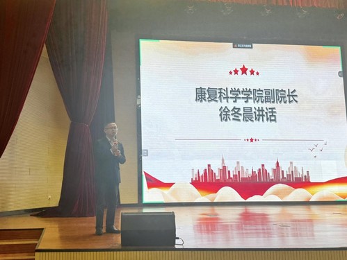 康复科学学院副院长徐冬晨做总结讲话,他明确表示,学院与见习单位是友好合作关系,希望同学们常怀感恩之心,明确见习目标与任务,遵守见习单位的规章制度,学习康复治疗师和特教老师的爱心、耐心以及专业性,鼓励同学们朝着既定目标不断进取,勇攀高峰。
