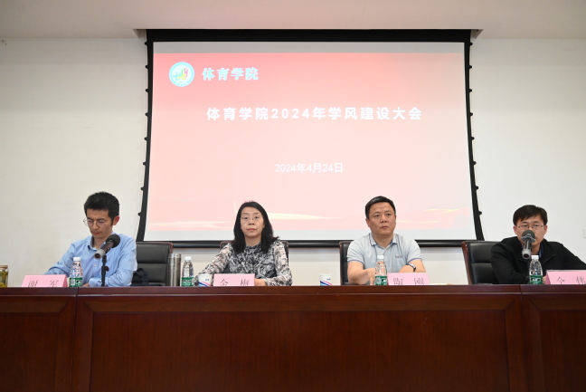 4月24日下午,体育学院召开2024年学风建设大会。会议由学院直属党支部副书记谢军主持,学院党政班子全体成员、体育教育系全体教师及全体在校生参加。