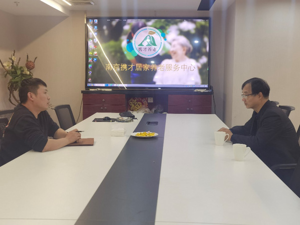 为进一步加强学院和企业间的联络,推动“校企合作”走深走实,全力保障2024届毕业生高质量充分就业,4月23日下午,管理学院党总支副书记卢锐航、辅导员陈江铭前往南京携才居家养老服务中心开展调研交流活动,南京携才居家养老服务中心(连锁)、南京携才健康管理有限公司董事长郭恩斌、南京携才居家养老服务中心副总经理杨渊接待了卢锐航副书记一行,并进行了交流座谈。