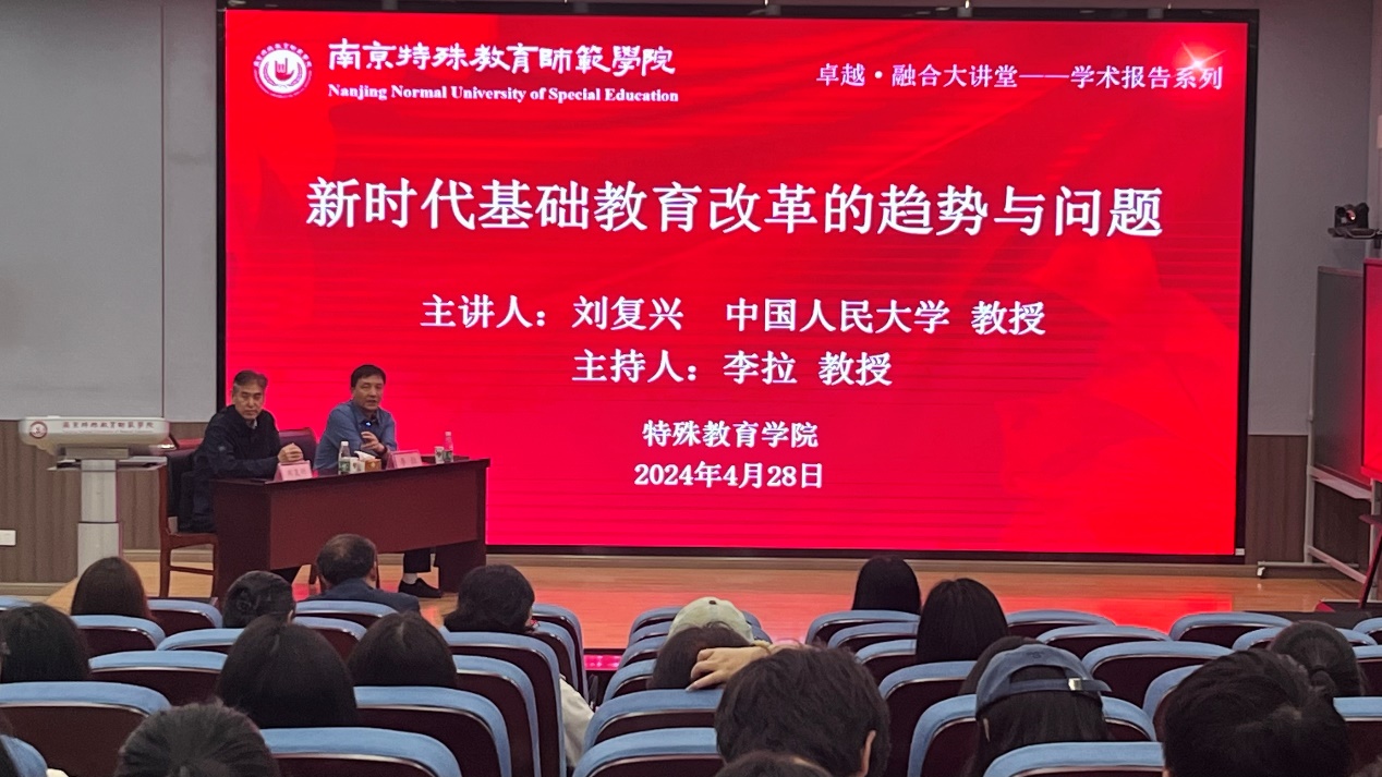 2024年4月28日,特殊教育学院邀请到国内著名学者刘复兴教授来院讲学。刘复兴教授是中国人民大学教育学院学术委员会主任、原西北师范大学副校长、中国地方教育史志研究会副会长。本次讲座主题为“新时代基础教育改革的趋势与问题”。讲座活动由特殊教育学院院长李拉教授主持,特殊教育专业及校内多个专业师生参加。