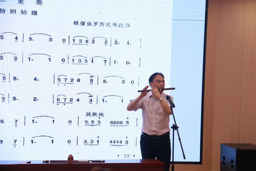 讲座中,毛云岗教授详细介绍了音乐教资的面试流程、注意事项、常见问题与对应策略,并针对器乐作品赏析、器乐演奏、器乐编配等教学要点以及毕业论文的写作技巧进行了细致讲解。特别在弹唱考试方面,毛云岗教授总结关键要领和技巧,同学们全神贯注,积极互动,现场气氛热烈。最后,毛教授以个人才艺展示的形式,用不同乐器演奏了少数民族各具特色的音乐,让在场的师生感受到了音乐的魅力。