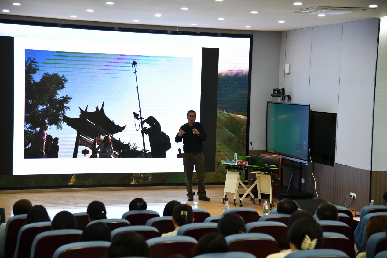 江苏省新闻摄影学会副会长、中国新闻社江苏分社资深摄影记者泱波做题为“重塑视觉语言 架构传播边界”的讲授。他强调,摄影艺术不同于文字、美术和音乐,它更趋于具象,要靠双脚、靠行动去实现。要拍出好的新闻图片,一定要多动多拍,腿勤手快。泱波老师结合大量的图片案例,分享摄影技巧“干货”,一要熟悉摄影设备,认真研读说明书;二要正确对焦,准确曝光;三要遵循“主体突出,少就是多”的原则进行构图,提升照片美感。在对手机摄影的特点进行分析的基础上,泱波老师带领大家就手机摄影的技巧和功能实现进行实操练习。他还以一组摄影作品为反面案例,指明日常摄影中所存在的图片歪斜、主体不清、画面杂乱、人物表情不当等一系列常见问题。