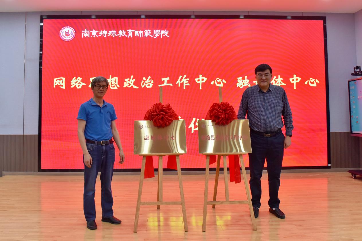 现场,校党委副书记谭忠和党委常委、宣传部部长、对外合作与交流处处长朱正东共同为学校网络思想政治工作中心和融媒体中心揭牌。