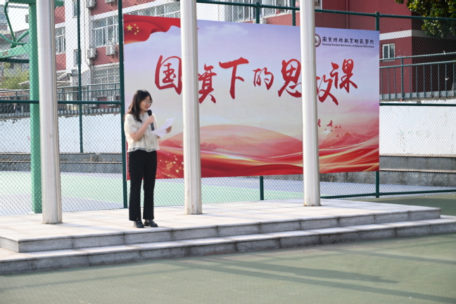 5月20日,由校团委主办、体育学院协办的“国旗下的思政课”暨升旗仪式在栖霞校区进行。体育学院直属党支部书记陶刚、副书记谢军、组织员李媛媛参加活动。体育学院团总支书记屈文文主讲。