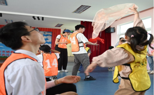 顶沙包、踢足球、套圈,特殊儿童们在志愿者的陪伴下开始体育游戏,在一次次的体验中小朋友们尽情享受着体育游戏带给他们的运动乐趣,每个小朋友充满活力的表情和饱满的笑容展现着关爱合作、共同进步的美好场景。简单而有趣的体育游戏,不仅增进了大朋友和小朋友之间的互动和合作,也传递出团结友爱的力量,为他们带来了快乐和鼓舞,更彰显了社会各界对特殊儿童的关爱和支持。
