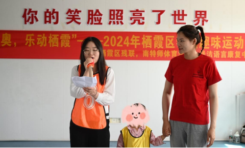 为迎接全国第34个助残日的来临,5月18日上午,体育学院与栖霞区残联在栖霞区钱洁语言康复中心共同举办了一场别开生面的特殊儿童体育游戏活动。活动以“活力特奥 跃动栖霞”为主题,旨在让特殊儿童通过参与运动和游戏感受快乐、增进友谊并融入社会。本次活动共有30名特殊儿童和老师们参与。