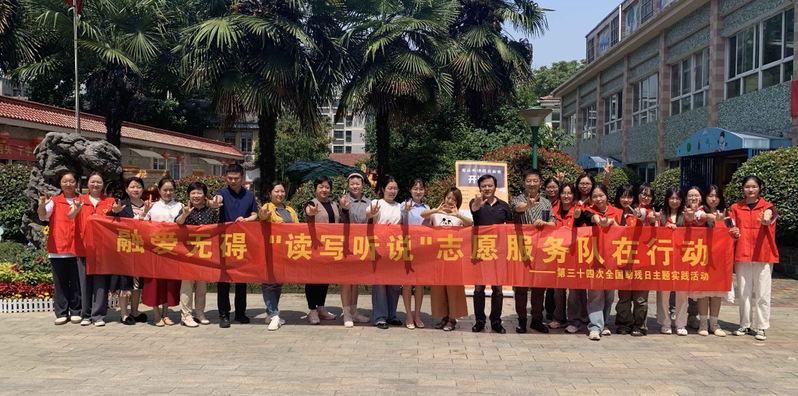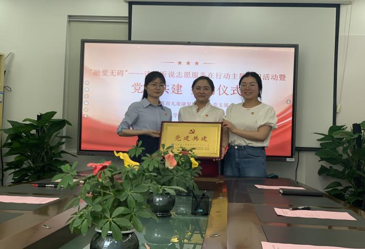 5月18日,在第34个全国助残日到来之际,“融爱无碍”读写听说志愿服务在行动主题党日活动暨党建共建签约仪式在江苏省儿童康复中心举行。省儿童康复中心党支部张稚琳书记、张颖副主任,我校科研处副处长张伟锋、特殊教育学院党总支书记章小军、教师第二党支部副书记孙敏、学生第二党支部书记王赫煊及志愿服务队成员共同参加。