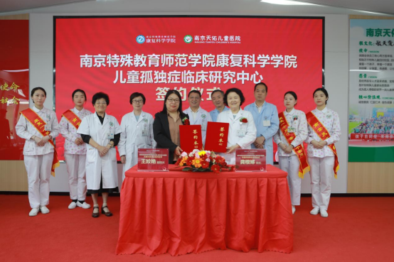 南京市天佑儿童医院具有丰富的临床案例,双方成立儿童孤独症临床研究中心以及儿童康复专项人才培训基地,有助于在孤独症科学研究、儿童康复人才培养、实践教学、学生创新教育等方面展开更具深度的交流与合作,也有助于康复治疗学、听力与言语康复学等专业产教融合深化发展。(文、图/张秀伟 编辑/程睿 宋宁宁 审核/王姣艳 杨黎珍)