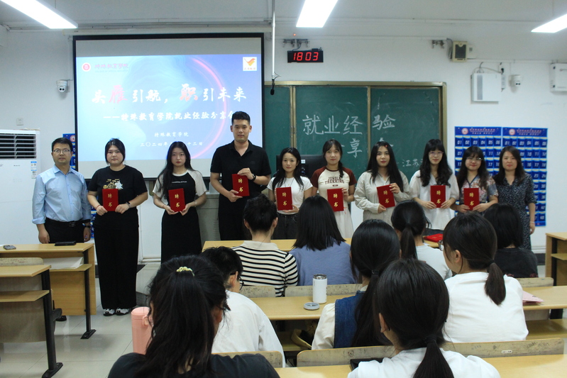 为帮助2021级特教学子解答就业方面的疑惑,5月22日,特殊教育学院在博雅楼2307召开“头雁引航,职引未来”头雁微课启动仪式暨就业经验分享会。特教学院党总支副书记李鹏、学工办主任元志立、21级辅导员李欣璟,21级部分学生参加分享会。