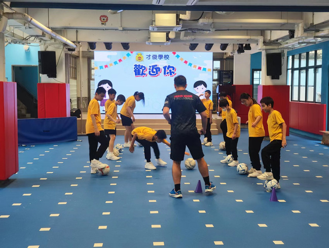 在香港才俊特殊教育学校,代表团一行观摩足球课,参观学校的环境设施,了解香港特殊教育学校的发展状况,并与才俊特殊教育学校梁飞农校长及体育负责教师就特殊孩子的个性化教学和辅导开展探讨。