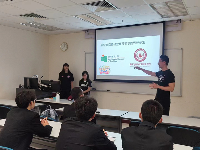 在香港教育大学,代表团一行走访特殊教育与辅导学系、整全成长发展中心以及健康与体育学系,分别与特殊教育与辅导学系刘铎主任、健康与体育学系高级讲师陈靖逸进行座谈。代表团就特殊教育新理念、融合教育新思路,体育教育专业人才培养模式、教育规划、课程设置、实践成果以及学生就业等方面与对方进行深入探讨。