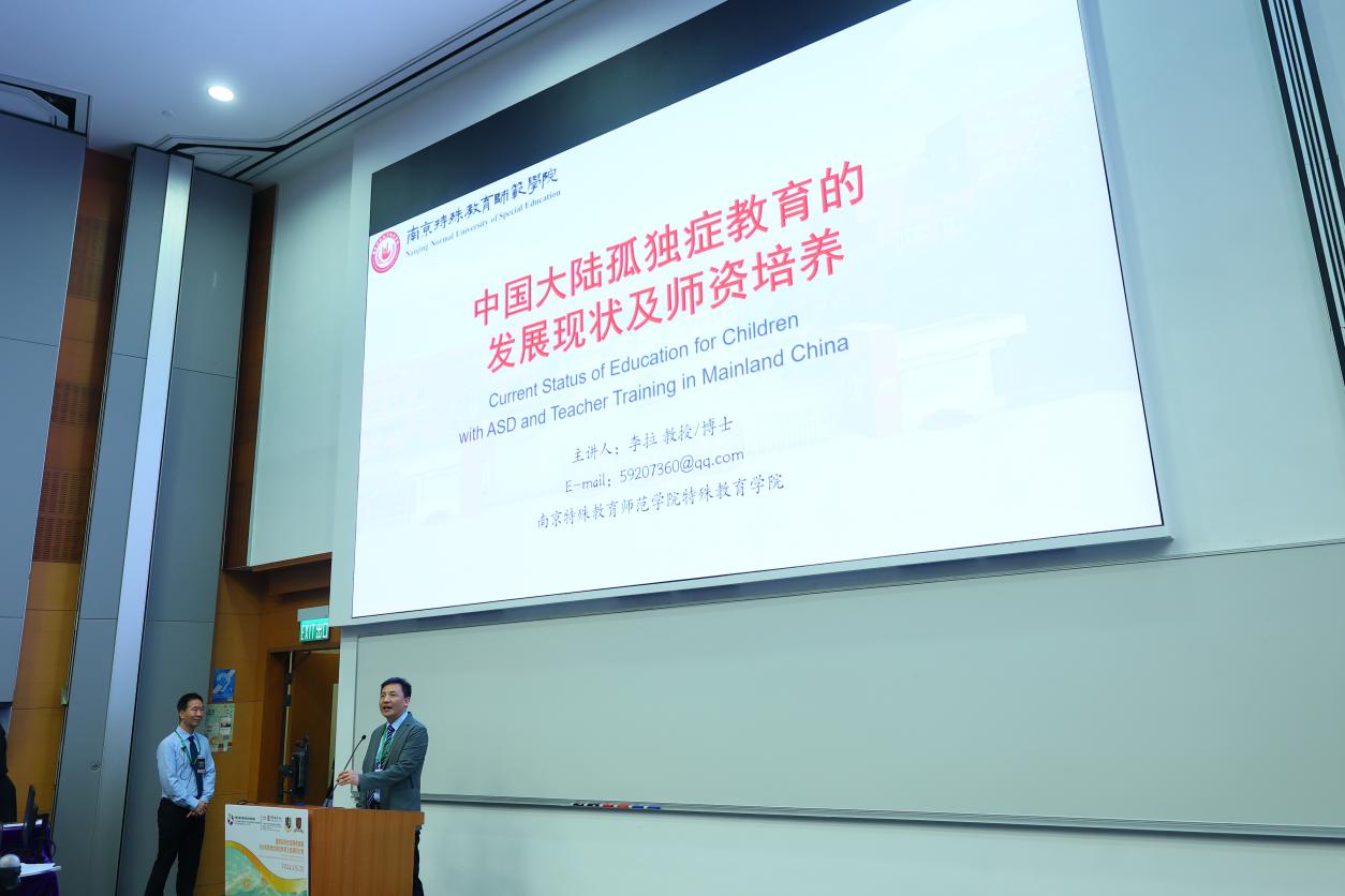 在当天的国际学术研讨会上,来自美国西北大学、加州大学洛杉矶分校、加拿大多伦多大学的学者们围绕孤独症儿童研究进行学术分享。新当选的孤独症教育发展联盟理事长李拉教授做“中国大陆孤独症教育的发展现状及师资培养”专题报告,向香港特教界讲述内地孤独症教育发展与研究情况,并对南京特殊教育师范学院设立的全国唯一的孤独症儿童教育本科专业建设情况进行分享和介绍。