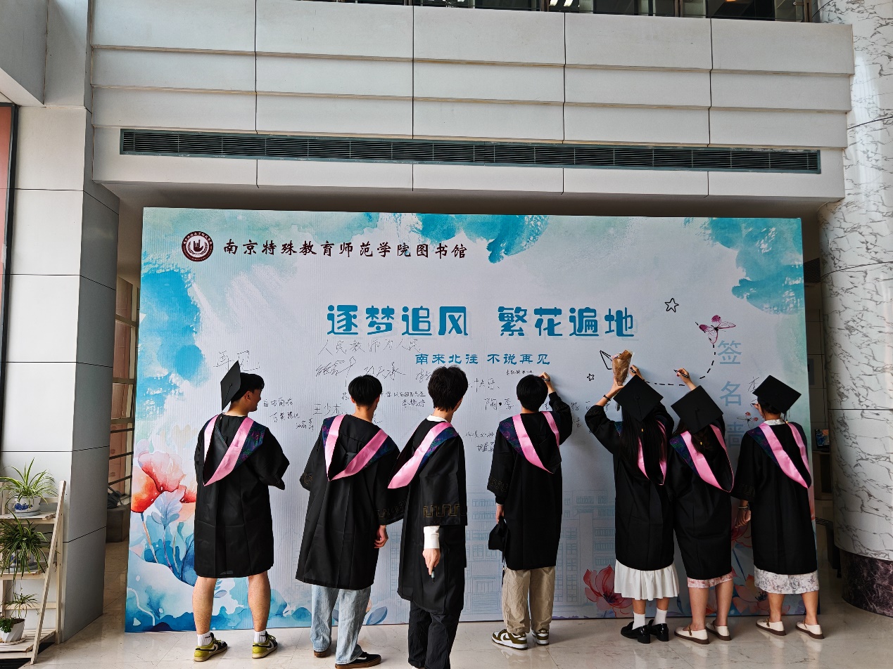 一面签名墙矗立在图书馆显眼位置,吸引着每一位路过的毕业生。签名墙上,毕业生们纷纷留下自己的名字和祝福语,每一笔字迹都承载着他们对母校的眷恋和对未来的美好期许。这些签名不仅是对大学生活的告别,更是对未来人生旅程的期待。