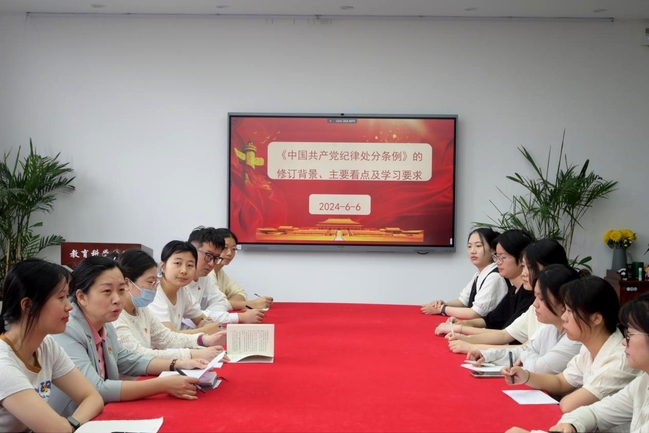 为加强毕业生党员离校教育,全面推进党纪学习教育走深走实,进一步增强党员纪律意识,引导毕业生党员在学思践悟中坚定理想信念,在实干担当中锤炼党性修养,6月6日上午,教育科学学院召开毕业班党员“最后一节党课”及党员座谈会,会议由学生第二党支部书记江敏主持,教育科学学院党总支书记吴月华给全体毕业生党员上专题党课。
