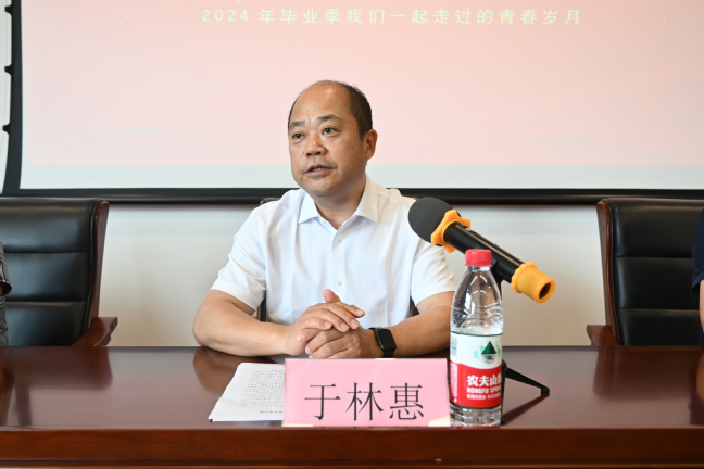 于林惠书记代表学校党委和行政向顺利完成学业的体育学院2024届毕业生表示祝贺,对为同学们成长付出辛勤汗水的教职工和家长们致以崇高敬意和衷心感谢。他语重心长地对毕业生们提出了四点希望。一是“业精于勤而荒于嬉,行成于思而毁于随”,做一个有速度的人。他强调,“速度”体现在执行力上,在如今竞争日益激烈的社会中,拥有良好的执行力已经成为成功的重要因素之一。二是“非淡泊无以明志,非宁静无以致远”,做一个有高度的人。他希望同学们始终传承并弘扬“博爱塑魂”的校训精神,以博爱之心拥抱未来、迎接新的人生旅程。三是“博观而约取,厚积而薄发”,做一个有厚度的人。他指出,仅仅拥有一张大学文凭是不够的,还需要不断增加自己的知识厚度,以适应日新月异的社会发展和挑战。四是“心怀温度,润物无声”,做一个有温度的人。作为一名师范生,要始终做到言传身教,成为学生的榜样,让学生感受到温暖和力量,激发他们自身的潜能。