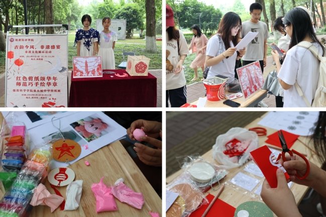 为丰富学生的校园文化生活,传承中国剪纸这一非遗文化手工技艺,展现学前教育专业学生扎实的手工技能,教育科学学院于6月5日至12日在栖霞校区图书馆举办第五届中华剪纸展。本次展览分为两个部分,包括“红色剪纸颂华年,师范巧手绘华章”中华剪纸展和“古韵今风,非遗盛宴”非遗文化展示活动。