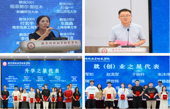 学院副院长陈仲珊、副院长孙计领分别宣读了优秀“升学之星”获得人选和“就(创)业之星”获得人选,学院领导向获奖人员颁发荣誉证书。