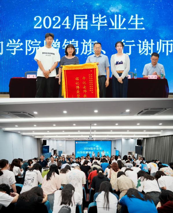 春华秋实知识海,桃李满园师恩深。2024届毕业生向学院赠锦旗、行谢师礼。