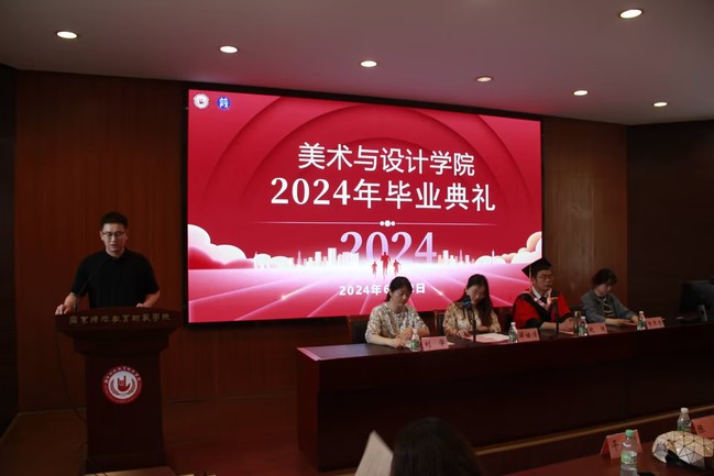 在庄重而又充满喜悦的氛围中,美术与设计学院2024年毕业典礼于6月12日上午9点在博韵楼114报告厅举行。美术与设计学院党总支书记薛皓洁、常务副院长赵健、副院长刘学、教科研办公室主任朱思思,学位委员会陈新教授、平莉教授出席本次典礼,典礼由徐祥老师主持,2024届毕业班老师以及2024届全体毕业生共同参加。