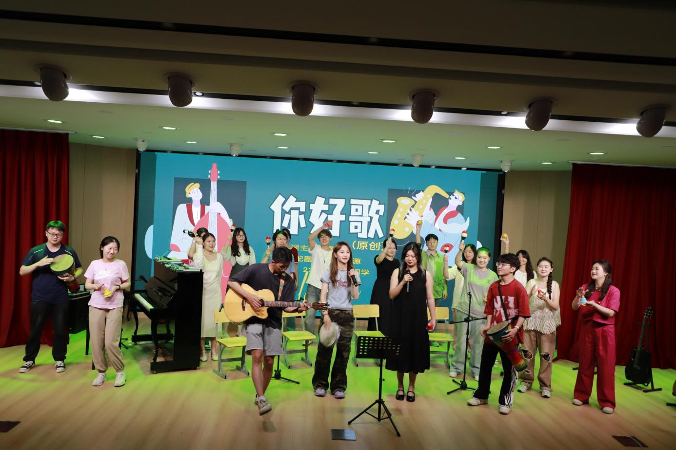 音乐治疗的临床干预是丰富多样的,来访者在音乐治疗干预中可选择唱、跳、演和听的方式参与音乐治疗的活动。但由于不是所有来访者都学过音乐,因此治疗师们需要根据来访者的能力状态创作歌曲,或对已有乐曲进行二次创作,目的是为了让更多不同能力的来访者都参与进音乐治疗活动中来。因此,本场音乐会不同于以往的音乐会,学生多从音乐治疗角度出发,创编能够被运用在未来音乐治疗临床工作中的歌曲,并进行展示。