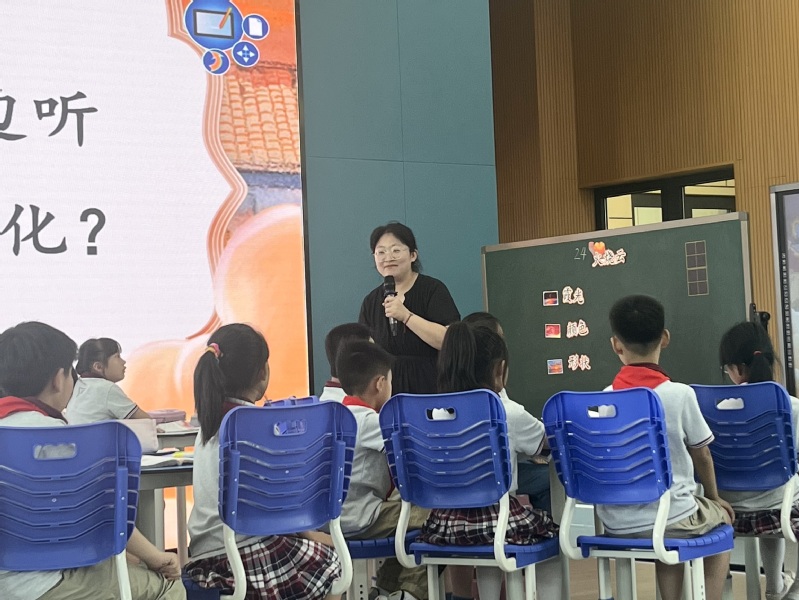 学生们观摩了杨倩老师执教的语文研讨课《火烧云》。杨倩老师根据班级学生的能力现状和发展趋势,特别是针对两位特殊学生的不同学习需求,灵活调整教学目标和教学方法,为他们提供多样化的学习支持。在说课环节,她深入剖析课程设计中的具体策略,为卓越教师班学生提供宝贵的融合课程调整实践经验。