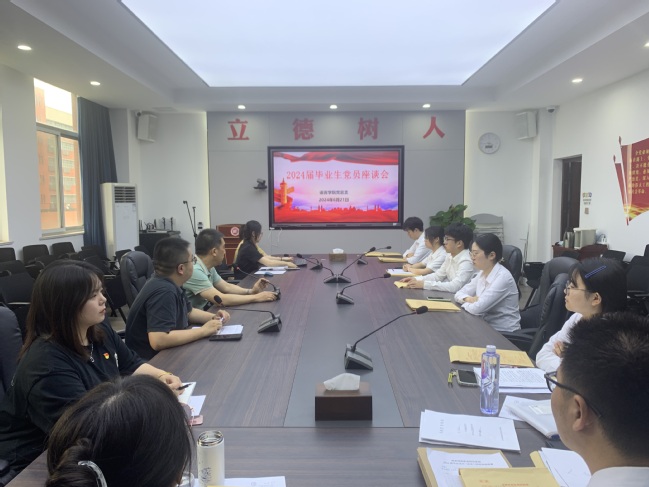 为切实增强毕业生党员教育管理工作的成效,坚定毕业生党员的理想信念,并激励他们以积极的态度迎接新的学习和工作挑战,日前,语言学院党总支举行了“系好人生纽扣 走好未来新路”2024届毕业生党员座谈会。学院党总支书记丁祖保担任主讲嘉宾,党总支副书记张冬冬、学生第二党支部书记翟玉杨、辅导员赵楠楠、全体毕业生党员和部分党员成长服务中心成员参加座谈。