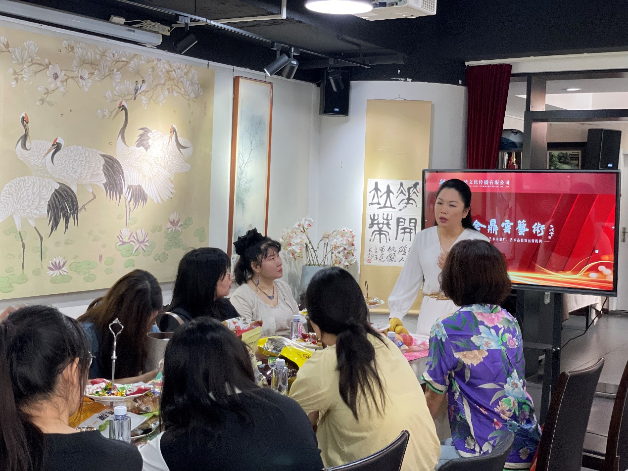 6月27日,实践团前往江苏金鼎文化传播有限公司进行参观学习与产学研合作研讨。江苏金鼎文化传播有限公司董事长徐晓燕女士为大家详细介绍公司的业务及发展情况,并在会上与老师同学们就今后在艺术专业产学研等方面合作进行了深入交流。