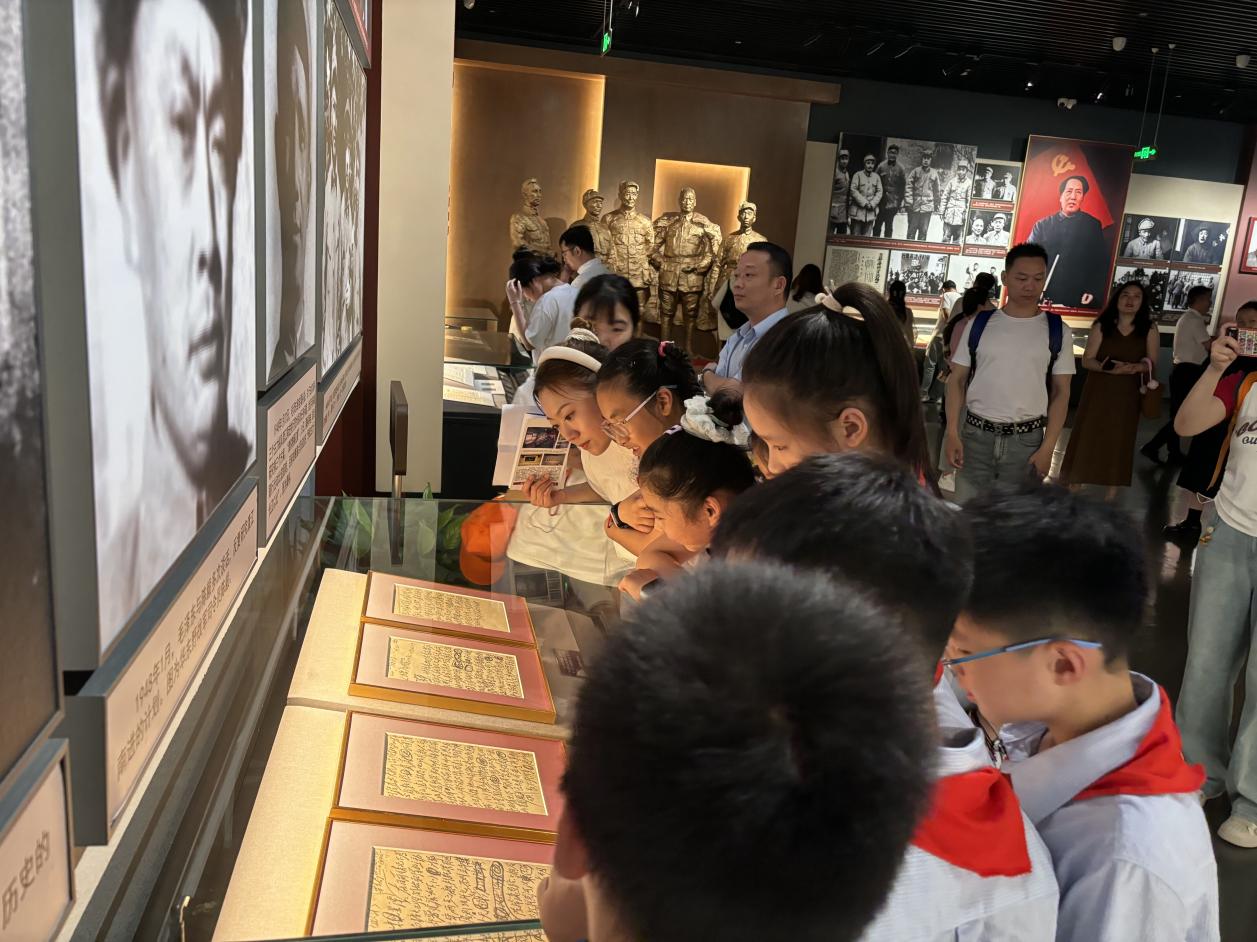 在渡江胜利纪念馆,大学生团队成员和少先队员们一同沉浸在馆内丰富的历史文物和珍贵的照片之中。每一件展品都承载着历史的厚重,它们静静地诉说着那段波澜壮阔的岁月,战士们使用的武器、血染的战衣、磨破的草鞋,无不展现着革命战士们英勇无畏、艰苦奋斗的精神风貌。