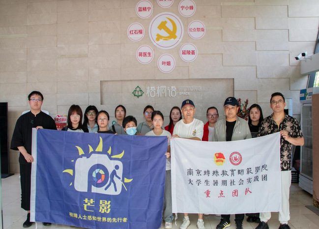视障人士也能摄影拍照?暑假伊始,为弘扬扶残助残传统美德,南京特殊教育师范学院语言学院芒影团队赴江苏省南京市长虹路社区服务中心,在“一家亲”驿站与视障人士展开“耳目一新”的摄影交流与指导。