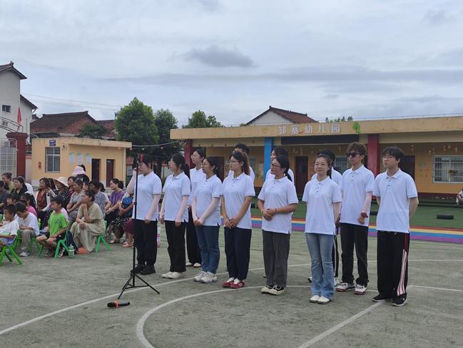 开营仪式上,支教团成员和小朋友们在国旗下共唱国歌,同时加以手语元素展现南京特师的独特风采,为孩子们种下关注特殊人群的种子。邹寨村小学校长欧旭辉为本次活动致辞,热情地欢迎远道而来的支教团队成员,对“扶光启橙”支教团队为此次暑期夏令营做的前期准备给予高度的肯定,并表示将全力支持此次活动,希望全体支教队员在活动过程中提升自己专业水平,丰富个人阅历内涵,把苏陕协作走深走实。支教团队的陈宇老师表示团队成员一定不负学校的支持和家长的期望,拓展小朋友们知识面,打开他们看世界的窗,帮助孩子树立理想,筑梦未来。