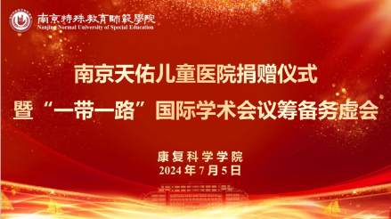 7月5日上午,南京天佑儿童医院捐赠仪式在我校顺利举行。南京天佑儿童医院院长龚根娣、书记秦沛龙、总经理助理苏建清、副院长张明出席,校党委常委、副校长吴彬江、校基金会办公室主任陈蓓琴以及康复科学学院相关负责人参加捐赠仪式,仪式由康复科学学院副院长(主持工作)王姣艳主持。