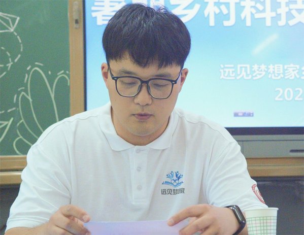 “远见梦想家”乡村教育振兴实践团队长陆明宇同学代表实践团发言。他代表团队对商南县教育和体育局、南京励志阳光心汇心公益基金会、毕家湾小学的领导和老师们的关怀和帮助表示感谢,向参营学生详细介绍了夏令营的宗旨、目标及课程安排。陆明宇同学表示,他们将全力以赴为孩子们带来新的知识,希望全体参营同学在接下来近两周的时间里能够尽情体验夏令营的乐趣,开拓视野,在特色课程和活动中探索,鼓励同学们大胆尝试,展现自我,在体验和感悟中成长。