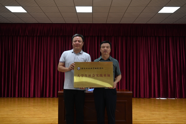 体育学院直属党支部书记陶刚和清油河希望小学校长韩立群共同揭牌“大学生社会实践基地”。