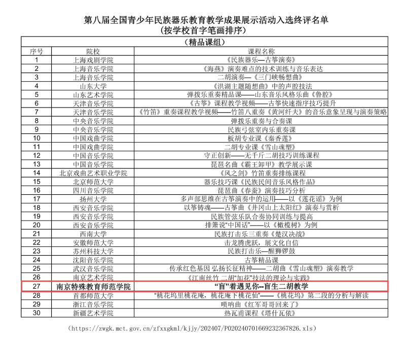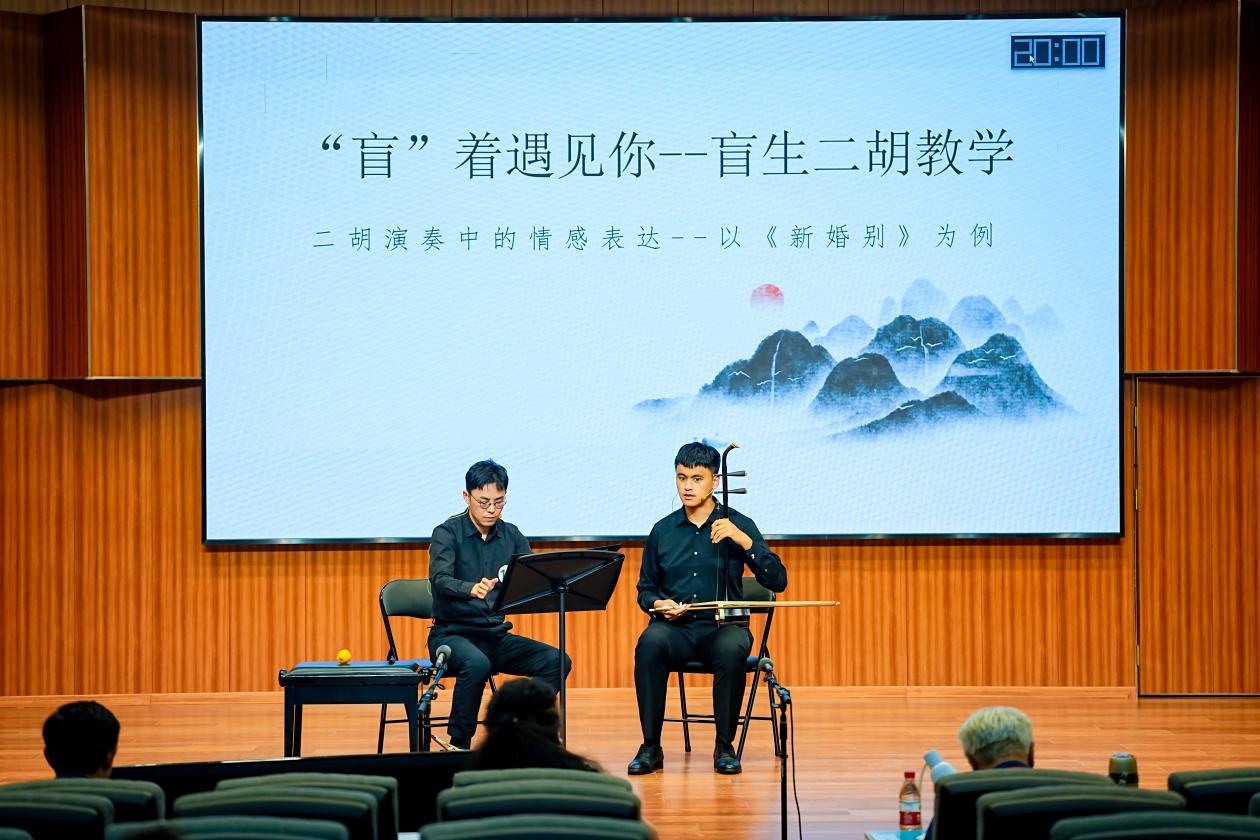 8月19日,茉莉花开·第八届全国青少年民族器乐教育教学成果现场展示活动在南京举行。音乐与舞蹈学院音乐治疗系主任段冀州博士的教师精品课“‘盲着遇见你’—盲生二胡教学”成功入围此次全国终评展演,并于8月21日下午在南京艺术学院音乐学院演奏厅进行现场展演。