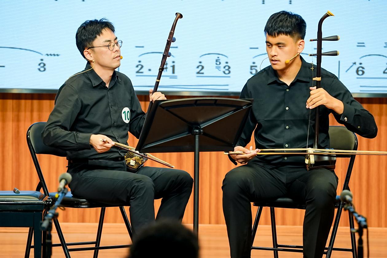 音舞学院教师段冀州博士携我校音乐学(师范)专业盲生赵厚仁同学在此次精品课展演现场为大家呈现了一场特殊的二胡教学。课堂上,段冀州老师采用了一系列创新的教学方法,结合盲生的生理特点和学习需求,通过触摸式教学、音频辅助以及一对一的个性化指导,确保学生都能准确感知每一个音符的跳动,理解每一首曲目的情感表达。学生在段冀州老师的悉心教导下,手指在琴弦上跳跃,旋律在空气中流淌,脸上洋溢着前所未有的喜悦和成就感。