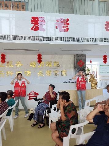 在志愿者的帮助下,老人们掌握健脑操动作。通过这些活动,同学们进一步体会了“农村养老”在乡村振兴战略中的重要性。