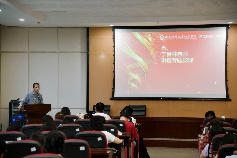 作为本次活动的重要环节,丁昌林老师以“坚定理想信念,担当时代使命”为题,为2025级全体新生讲授了一堂生动而深刻的专题党课,这也是新生入学教育的“理想信念第一课”。丁老师结合自身丰富的阅历与感悟,娓娓道来,寄语新生要筑牢信仰之基,珍惜大学时光,努力成长为堪当民族复兴重任的时代新人。同学们凝神聆听,深受启迪。