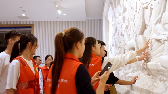步入展厅,在课程主讲老师的带领下,同学们深切感受渡江战役的波澜壮阔,感受渡江战役中人民群众的历史主体地位。主讲老师用声情并茂的声音向学员们讲述渡江战役的历史,也让他们去触摸相关的文字与浮雕,使同学们对这段历史有了更深刻地了解。中国共产党领导的人民解放军在西起九江、东至江阴的千里江面,分三路突破国民党反动派的防线,解放江南地区,为新中国的建立奠定了坚实基础。