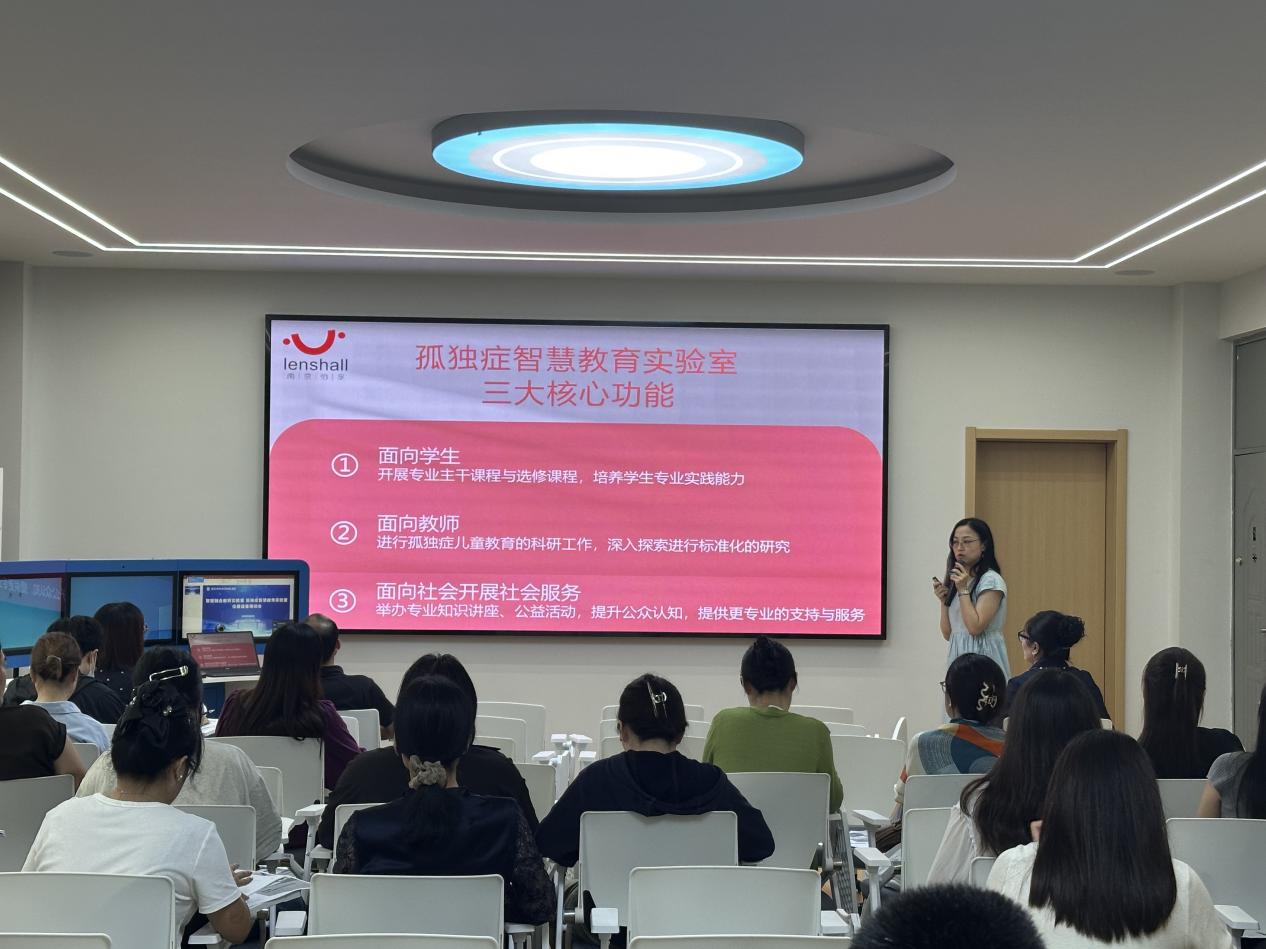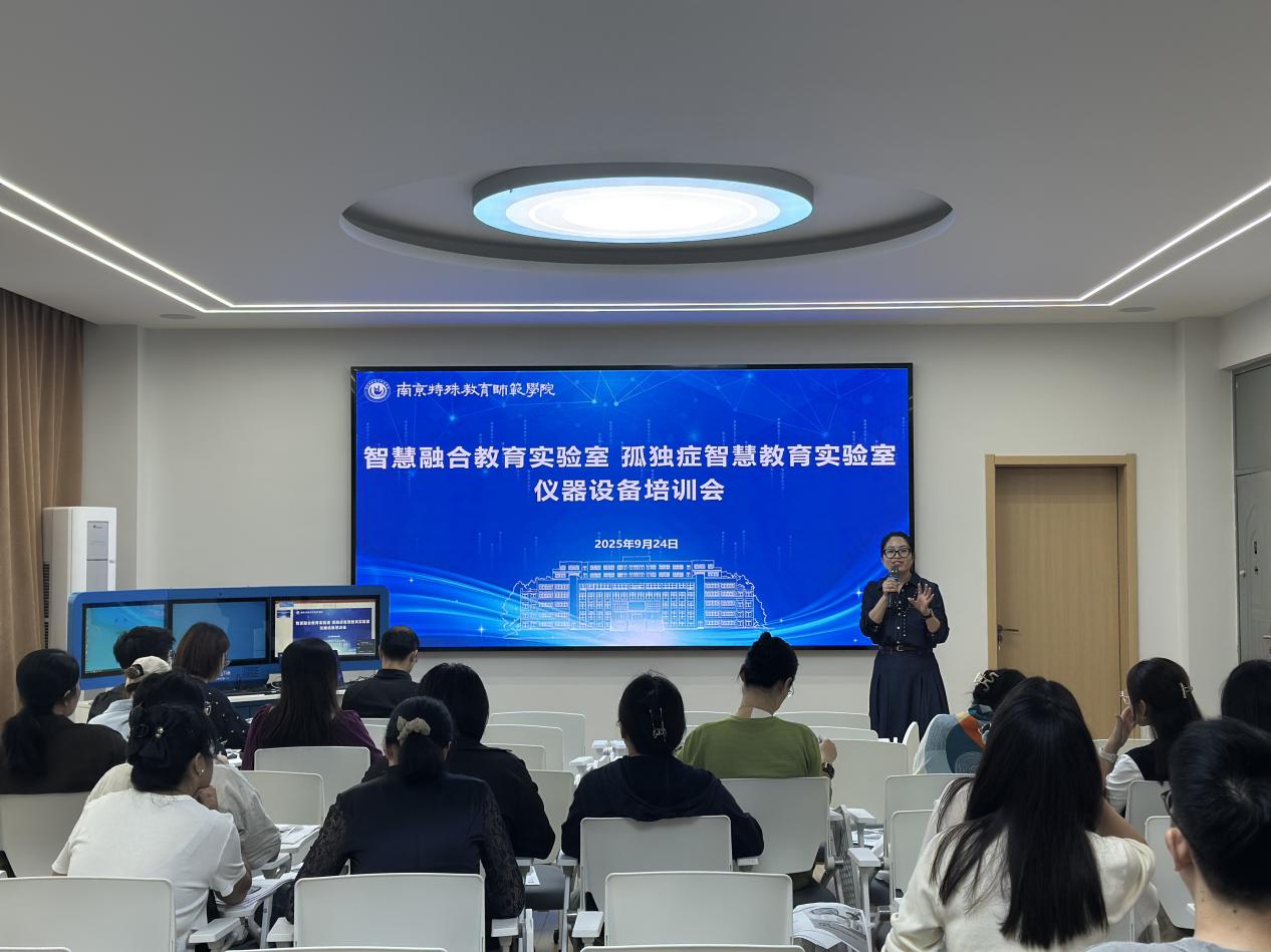 2025年9月24日下午,特殊教育学院举办了“智慧融合教育实验室与孤独症智慧教育实验室设备培训会”。本次培训由何燕春副院长主持,特邀三家企业的技术专家进行现场讲解与指导,特殊教育系、孤独症教育系、应用心理学系的全体教师以及手语翻译系部分教师参与培训。培训聚焦两个智慧实验室的核心设备功能、操作流程及实践应用,通过理论讲解、现场演示与实操练习相结合的方式,系统提升参训教师对智能化设备的理解与操作能力。
