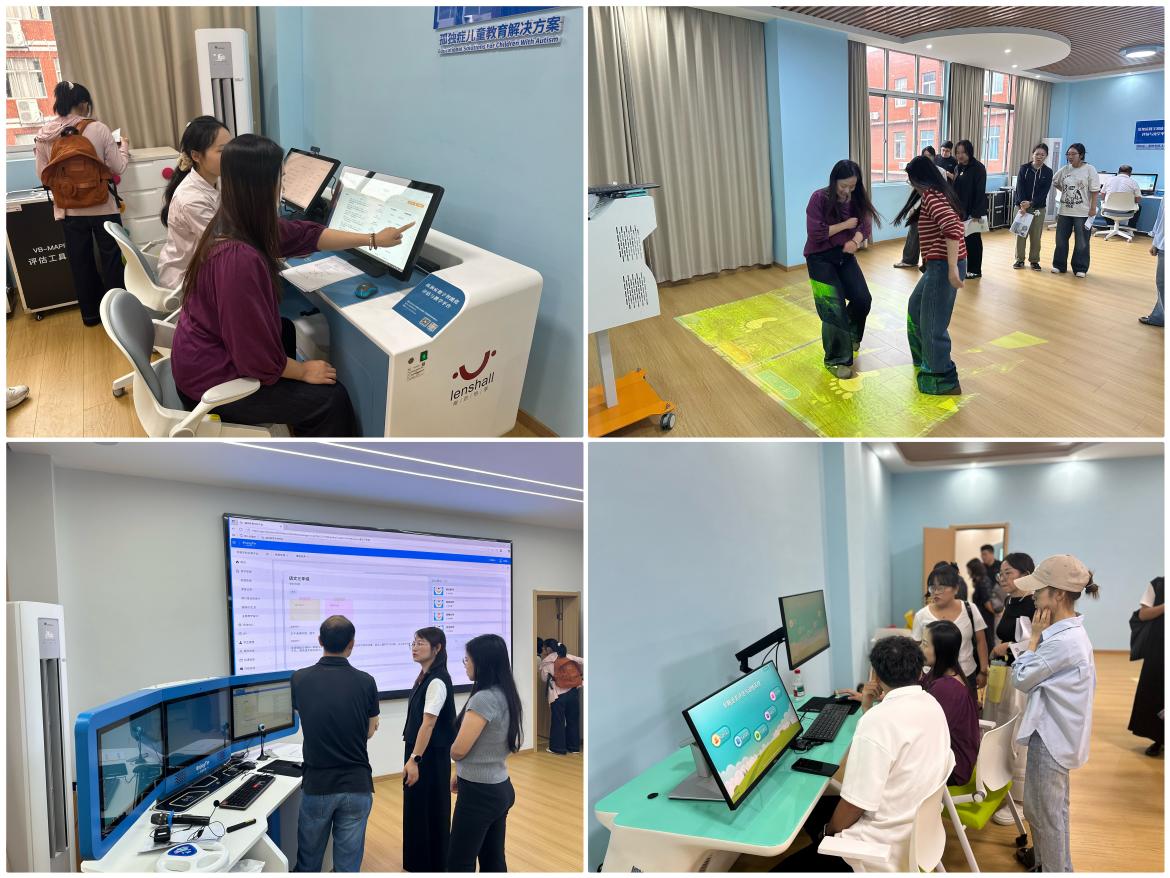 在现场演示与实操练习环节中,参训教师分组对各类设备进行深入体验与操作。大家或围聚在智能交互屏幕前,尝试创设多元化教学情境;或仔细研究新型评估工具,与讲师深入探讨施测细节;或在情景互动设备中亲身感受科技对激发儿童学习动机的独特魅力。通过亲自动手,教师们不仅迅速熟悉了操作流程,更聚焦于教学实际,就如何将智能工具无缝嵌入课堂、如何精准解读数据以制定个性化干预方案等核心问题,与培训人员展开了卓有成效的研讨,实现了理论认知与实践应用的紧密结合。
