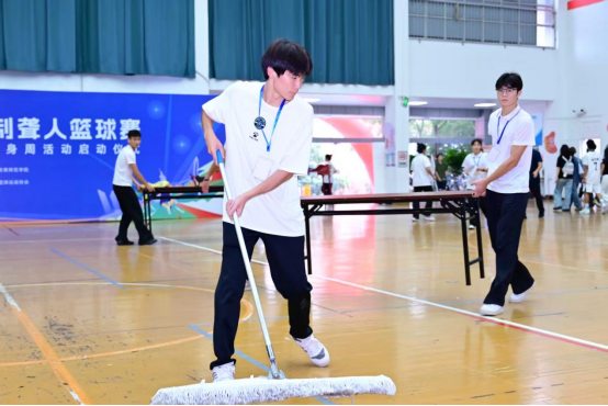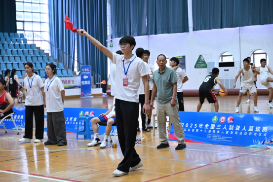 在刚刚落幕的2025年全国特校三人制聋人篮球赛的赛场上,运动员们用眼神交流、用动作呐喊,呈现了一场场力与美交织的无声较量。而在这片独特而热烈的赛场内外,一群来自体育学院的志愿者助理裁判员,用他们特有的方式,成为了比赛不可或缺的“螺丝钉”与“守护者”,确保了这场国家级赛顺利、公平地进行。