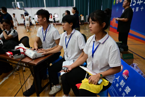 三人制篮球节奏极快,计时工作尤为关键。志愿者们紧盯计时钟,掌控比赛时间的每一秒、整体的每一分钟。他们精神高度集中,不敢有丝毫懈怠,因为他们的指尖,决定着一次进攻是否违例,一场比赛何时终结。他们在场边构筑了一道“时间防线”,用绝对的精准,守护着比赛最基本的公平。