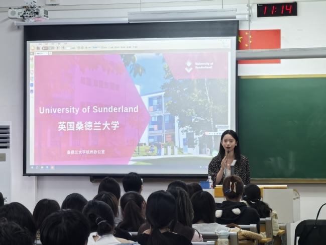 桑德兰大学南京特殊教育师范学院项目负责人刘超则着重介绍了秋冬英国访学项目。学生将有机会在全英文环境中学习生活,短期内强化英语能力,聆听来自商学院、艺术学院、工程学院等多领域的名师讲座;自由探索桑德兰及周边城市的魅力,参观历史遗址和博物馆,深度体验英国文化。此外,项目还预留了充足的自由活动时间,让学生充分感受英国的城市风光。(文、图/翟玉杨 孙文博 编辑/高亚丽 宋宁宁 审核/徐琴芳 冷晴)