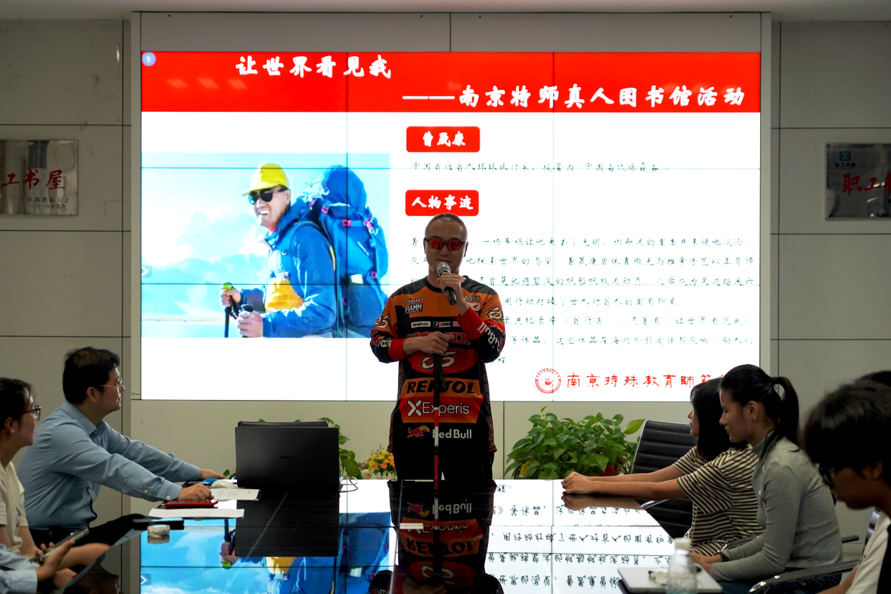 10月14日下午,在第42个国际盲人节前夕,图书馆“真人图书馆”迎来了一位特别的嘉宾——被誉为“中国当代徐霞客”的盲人环球旅行家曹晟康先生。他以“我看不见世界,就让世界看见我”为主题,为师生们带来了一场精彩的讲座。