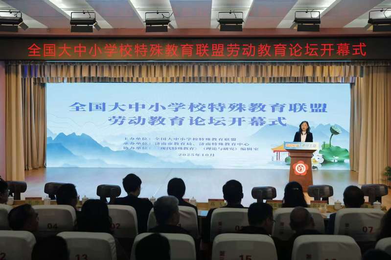 为全面贯彻落实《关于全面加强新时代大中小学劳动教育的意见》要求,进一步推动特殊教育学校劳动教育创新发展,2025年10月18日—19日,由全国大中小学校特殊教育联盟主办的“劳动赋能,激扬生命” —— 全国大中小学校特殊教育联盟劳动教育论坛在山东济南举行。党委常委、副校长许巧仙,党委常委、副校长高飞代表全国大中小学校特殊教育联盟理事长单位出席开幕式。中国残联教育就业部郑莉、山东省教育科学研究院王福建、济南市教育局王华和来自全国各地260余所特殊教育学校校长、骨干教师参加开幕式。开幕式由山东省特殊教育研究会副秘书长、济南特殊教育中心校长于生丹主持。