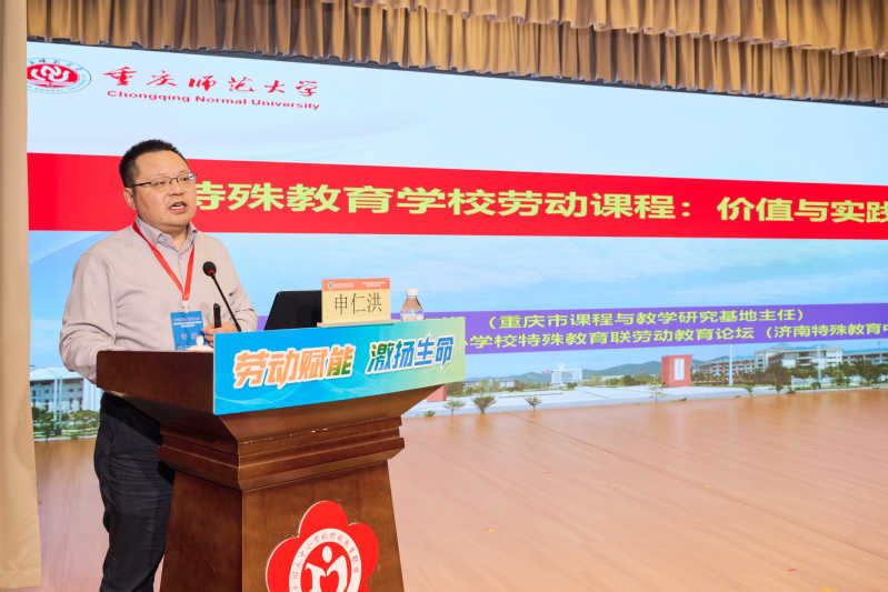 在主旨报告环节,重庆师范大学博士生导师申仁洪教授围绕劳动教育与特殊学生的全面发展、特殊教育学校劳动教育课程的价值和实践路径三个方面展开阐述。