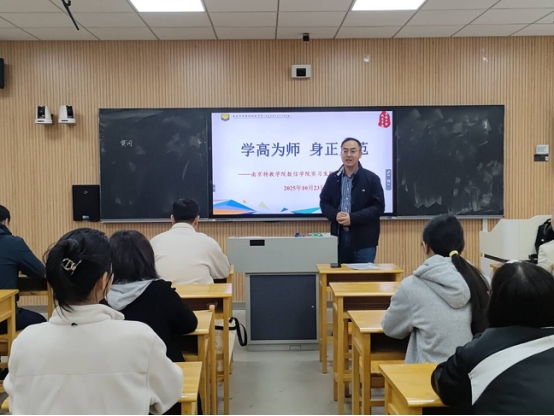 为深入了解师范生实习实践情况,加强校地合作育人实效,10月23日,数学科学学院副院长颜超、人工智能学院教育技术系主任戴玥、教学科研办公室主任杜文一行到南京市迈皋桥初级中学第二十九分校,调研师范生教学实习工作并看望实习生。迈皋桥初中副校长徐宁、教学处主任陈婷及德育处副主任金晶参加调研。