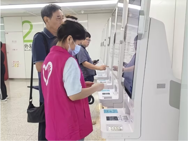 志愿服务聚焦于门诊大厅自助挂号机区域,志愿者们各司其职、热情饱满,主动协助患者完成挂号、缴费、发票打印、电子病历调取等操作,成为医院里一道灵动的“青春风景线”。面对不熟悉智能设备的老年患者、行动不便的残障人士,志愿者们更具耐心,通过一对一细致引导、手把手贴心帮扶,不仅有效缓解了医院导诊压力,更让患者的就医流程变得顺畅安心。不少患者在接受帮助后由衷称赞:“有这些年轻人在,看病都觉得更省心、更温暖了!”